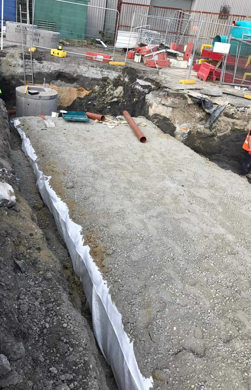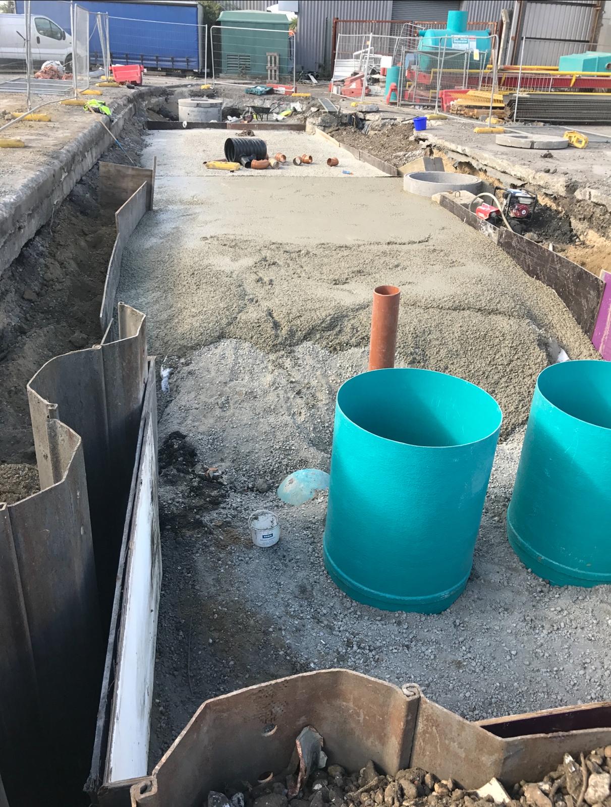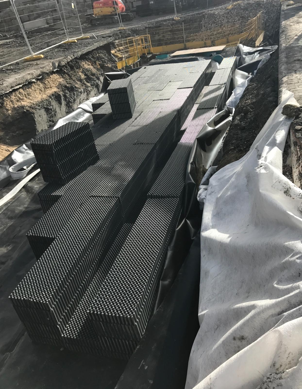 This project in Dartford involved the installation of an advanced stormwater management and drainage system designed to improve site water control and ensure long-term stability. The works began with deep excavation supported by sheet piling and edge protection to create a safe working environment. A large underground storage tank was installed to manage stormwater efficiently, complemented by a robust backfilling process to secure the structure. Following the tank installation, a modular stormwater attenuation system was assembled, incorporating high-capacity crate systems and protective geotextile membranes. These components were carefully connected to the main drainage lines, ensuring seamless integration with the site’s overall water management plan. The project demonstrates a commitment to precision engineering, safety, and sustainability, delivering a drainage solution that supports both environmental standards and future site operations.
